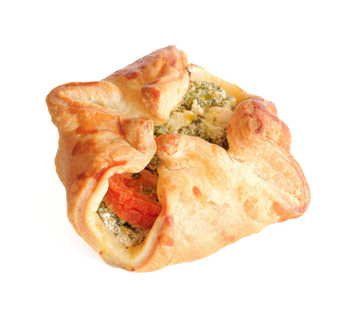 JUUSTO-PINAATTIPASTEIJA (L) - uutuus! - voitaikinanyytin sisällä salaattijuustoa, pinaattia ja kirsikkatomaattia