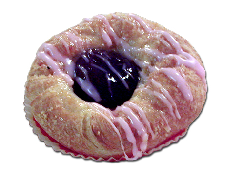 KESÄMANSIKKAWIENER (VL) - mansikkatäytettä sisältävä wiener, jonka päällä mansikanmakuista kuorrutetta