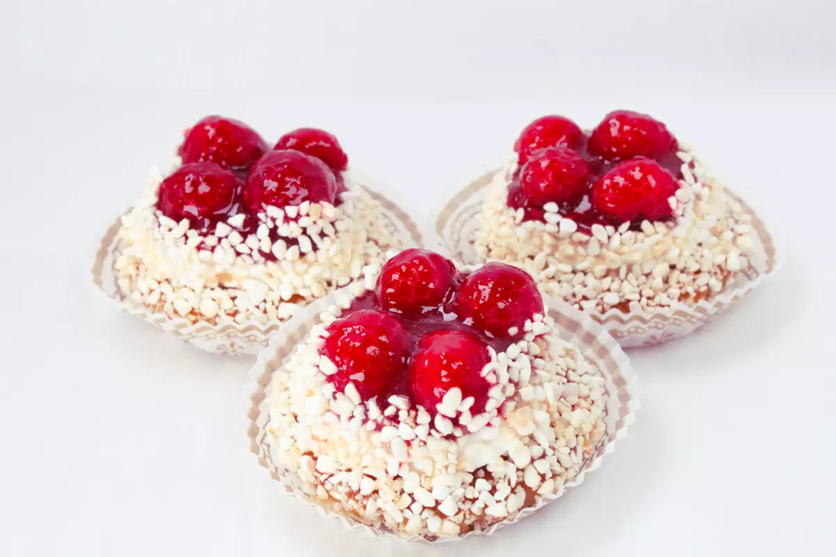 Vadelmatäyte runsasmarjainen ((Vadelma (60 %), sokeri, glukoosi-fruktoosisiirappi, vesi, muunnettu tärkkelys, sakeuttamisaine (E418), säilöntäaine (E202)),